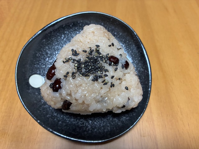 もち米の量は2合なので、ひとりで食べるにはなかなか大変。おにぎりにして明日のお弁当にします。当然ながら、お昼に会う予定の友人に押し付けることになるわけです。